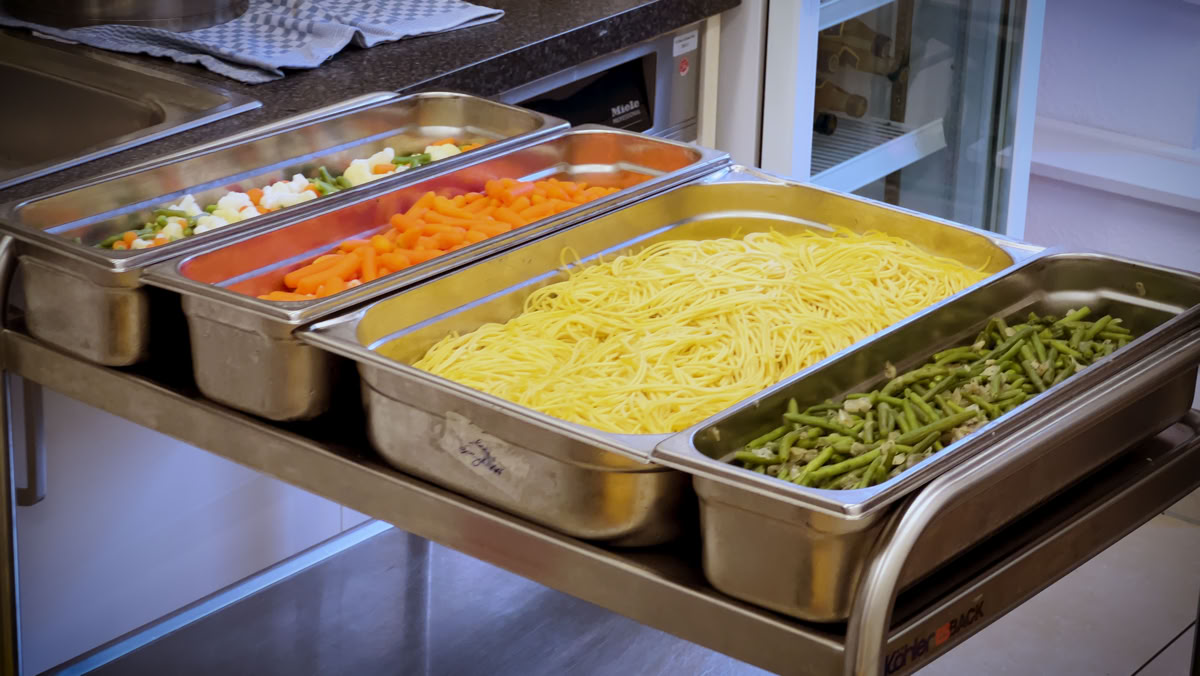 Auch in den Großküchen von Gastronomiebetrieben müssen täglich Unmengen an Mahlzeiten wegen, teils unvermeidbarer Überproduktion, entsorgt werden.